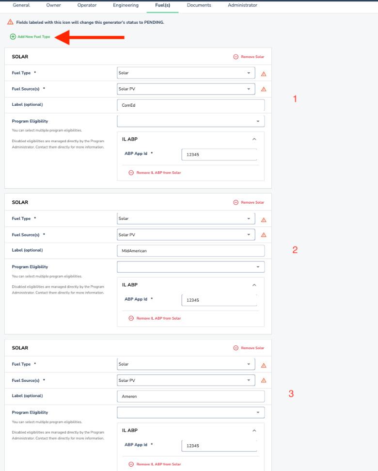 - Select IL ABP for the Program Eligibility and add the ABP App ID for all the fuel types. The ID should be the same in all fuel types.