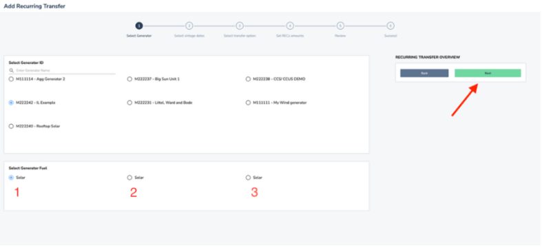 - Choose the correct recipient based on the fuel type you chose. If you chose the first Solar, the recipient would be ComEd and so forth. Hit Next.