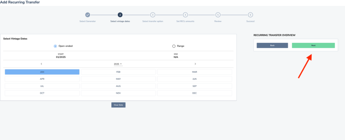 - Select the correct Vintage Dates per your agreement with IL. You can make the ART open-ended if you do not see the year your contract ends, but make sure the start date is correct. Hit Next.