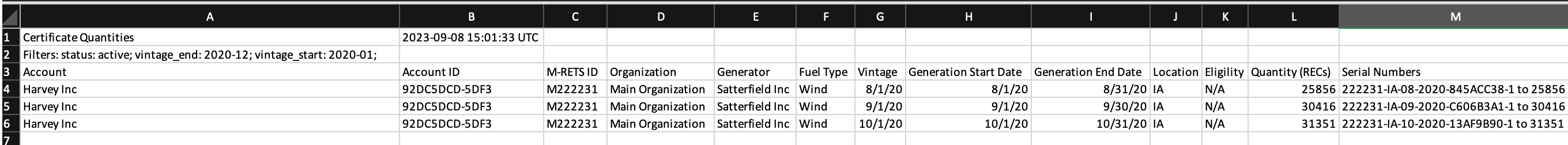 - Filter the Active certificates dashboard by the batches you wish to transfer. In this example below, we filtered by Vintage range of 01/2020 to 12/2020. Once filtered, we selected the Download button, you will need to take information from the downloaded CSV later.