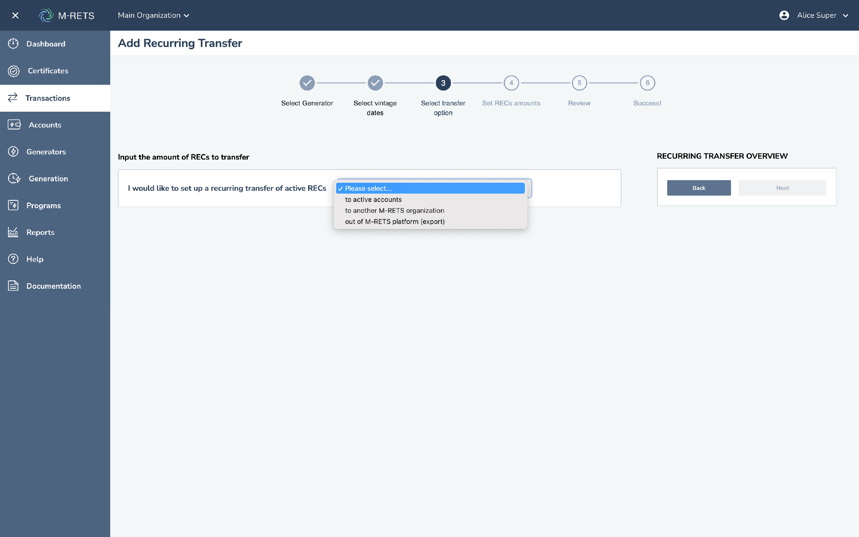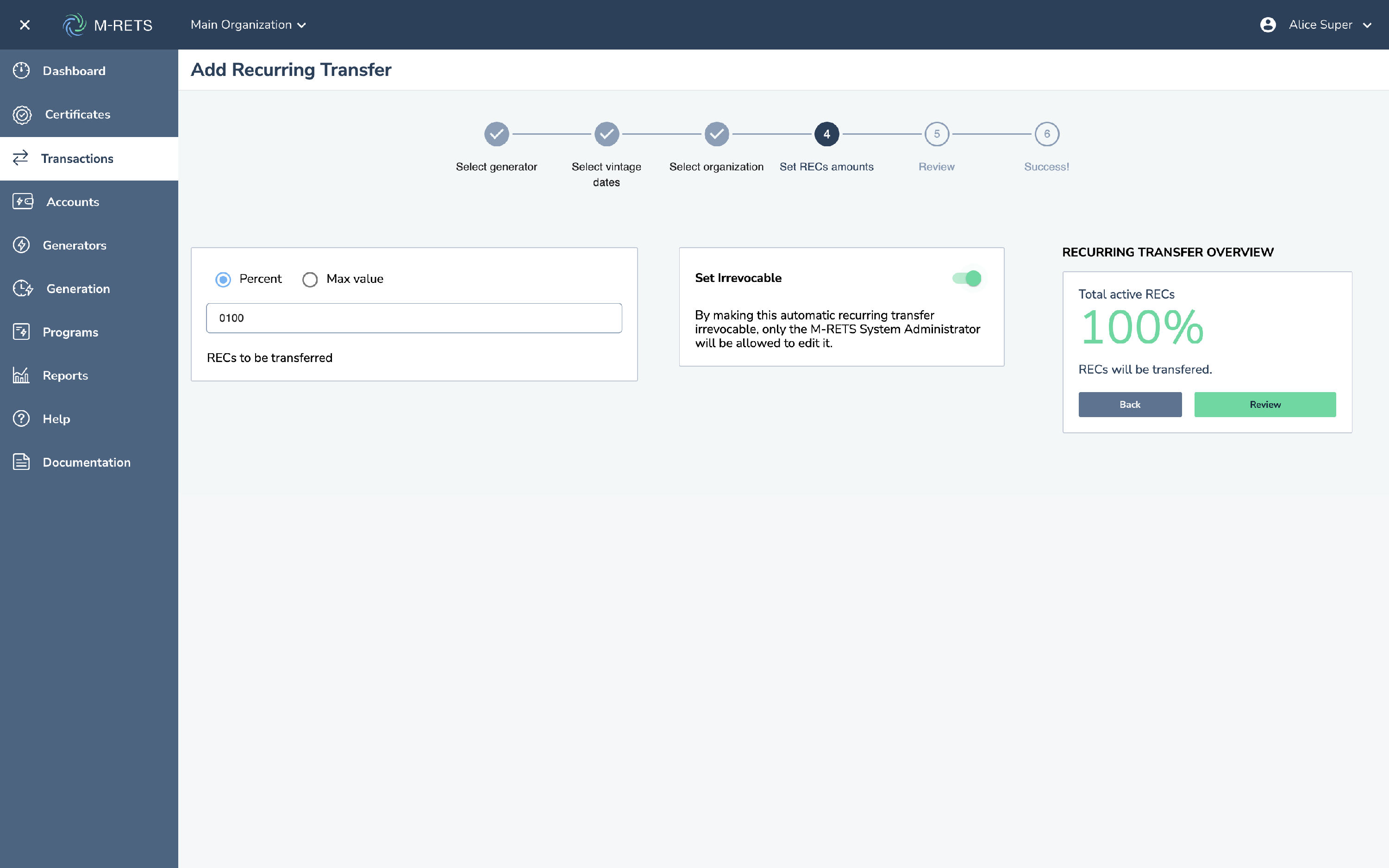 You can set either a percentage generation or a set amount of RECs to automatically transfer.