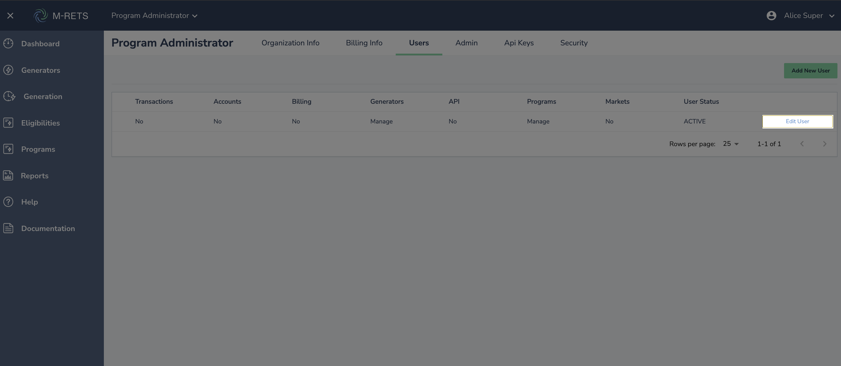 - Find your user and scroll to the right of the table to select "Edit User"
