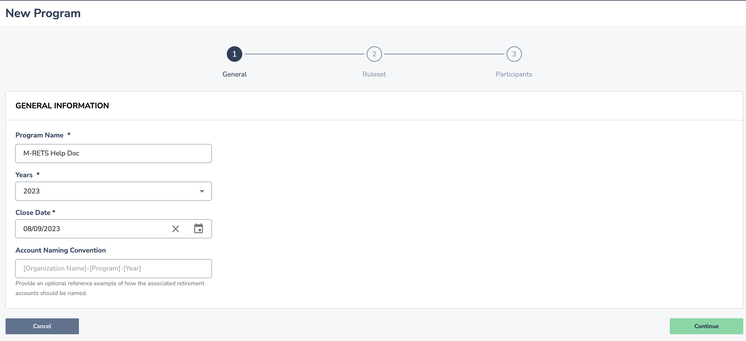You will now input the General Information for the Program: