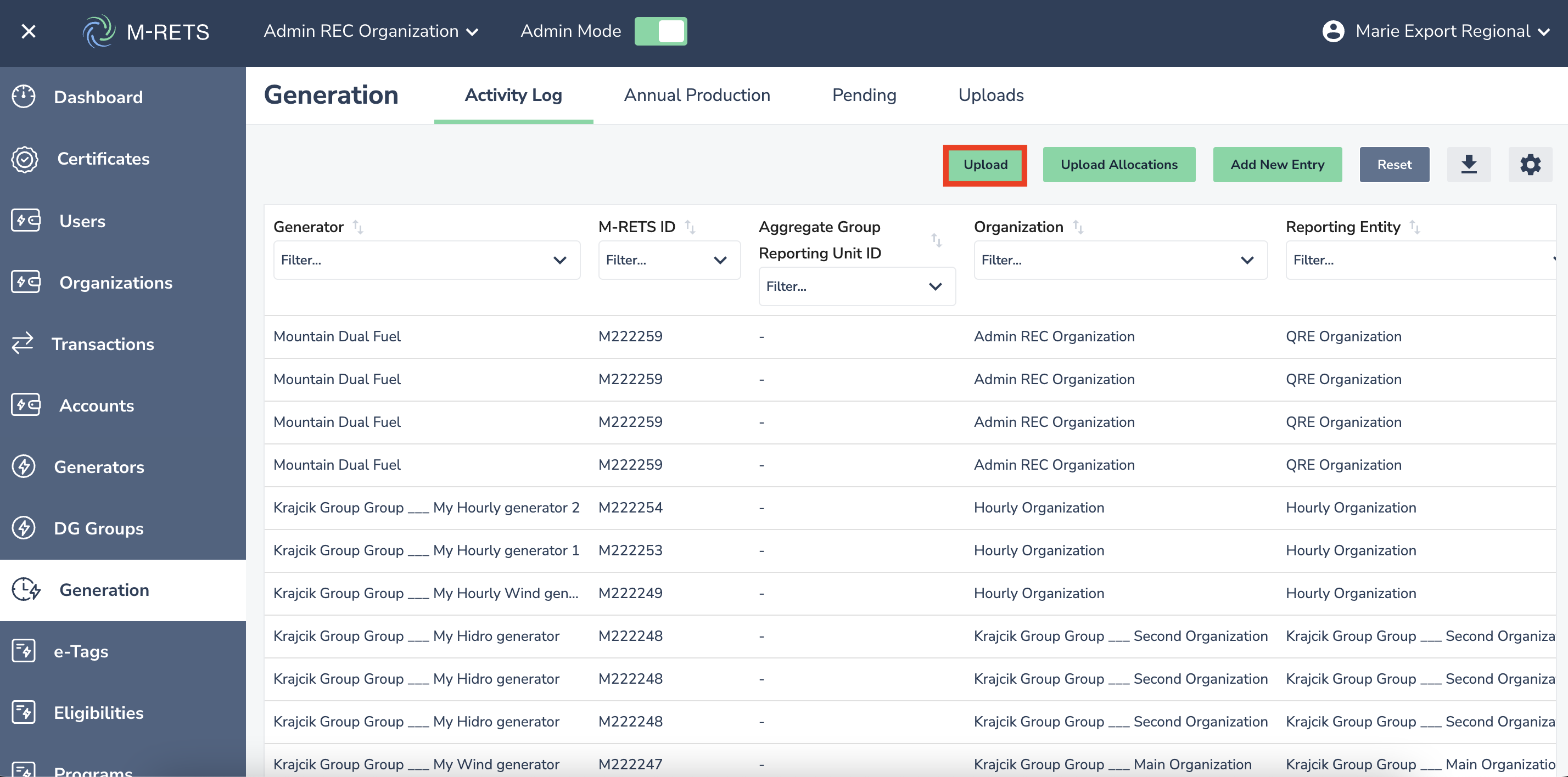 Generation for these facilities can now be uploaded via a CSV or through the system user interface.
