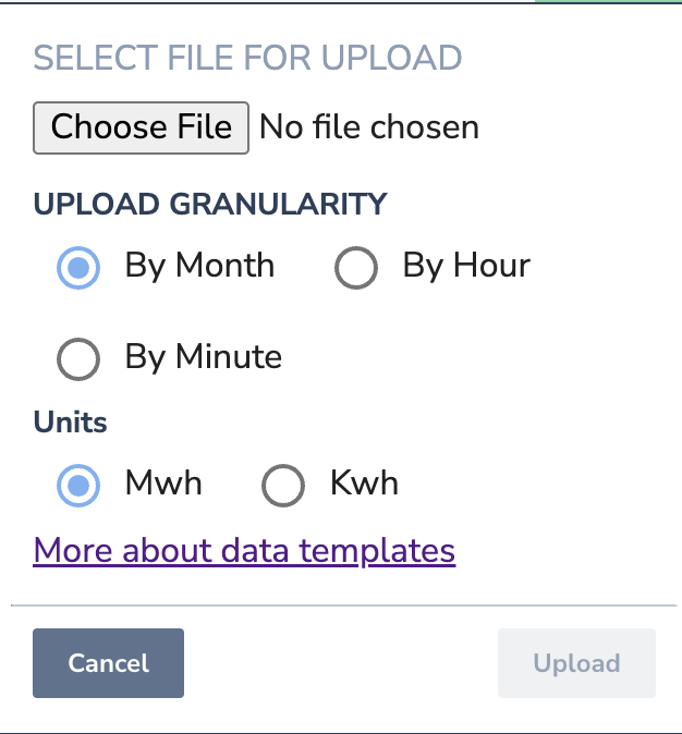 - Select your ‘Upload Granularity’. By default, Monthly will be selected. You will see examples of how your file should be formatted below