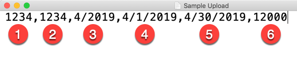 The CSV File can be created in Excel or Notepad. Programs (like Excel) that add formatting may reformat date fields which will result in errors when loading the file. The data shall be in ASCII Text with data fields delimited by commas (Comma-Separated Value – CSV format).