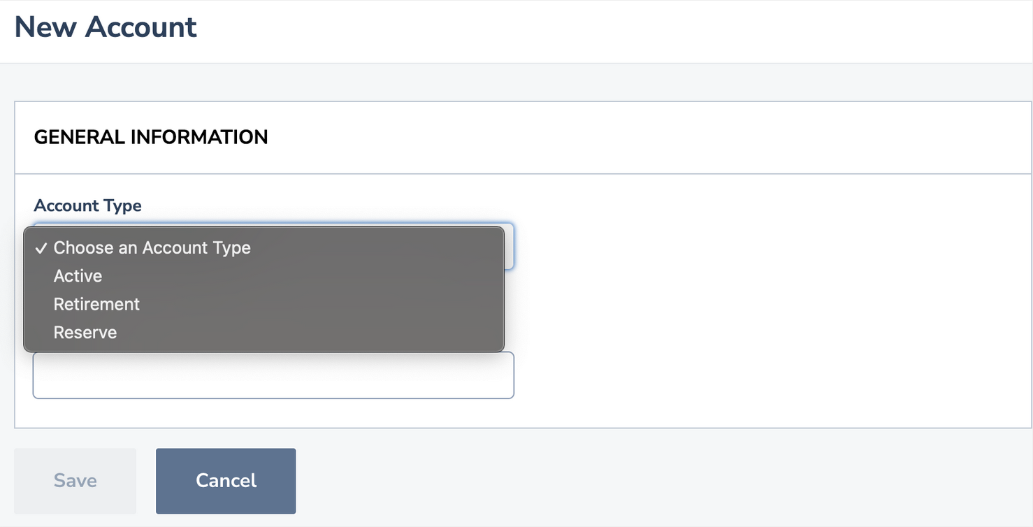 This article will walk you through how to add an active, reserve, or retirement account to your organization.