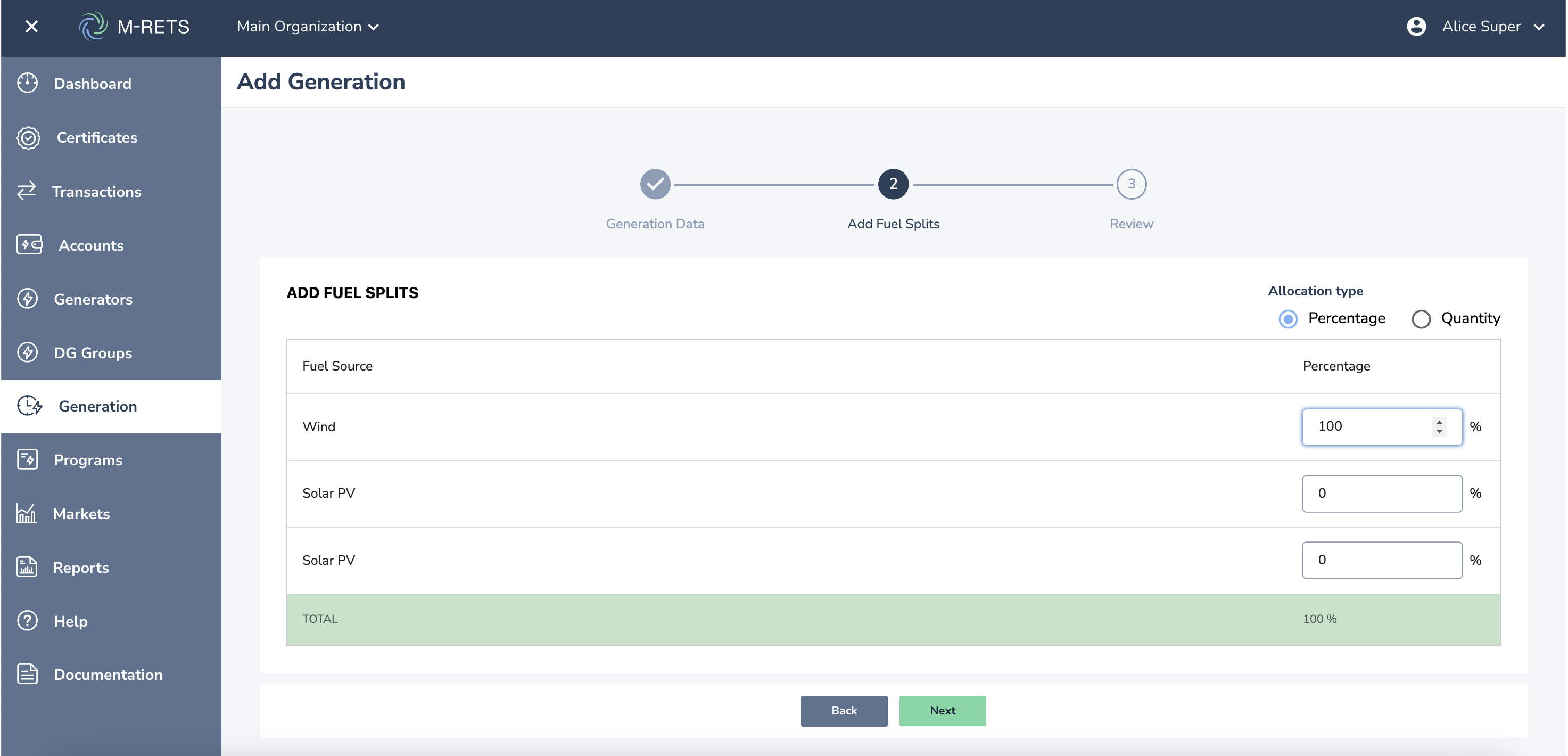 Note: Generators utilizing M-RETs must report 100% of their generation.