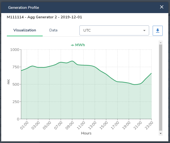 The Generation Profile will be displayed in a pop up window. The Visualization tab will display the hourly generation data in a graph.