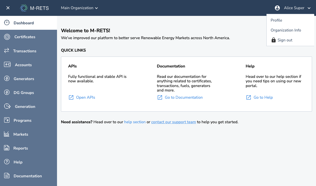 - Select your name in upper right corner and click on it for a drop-down. Then select 'Organization Info'.